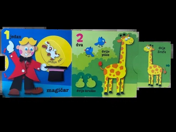 Interaktivna slikovnica s pomičnim dijelovima idealna je za prvo učenje brojeva i pojmova.