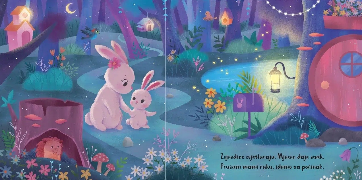 Zvijezdice svjetlucaju. Mjesec daje znak. Pružam mami ruku, idemo na počinak. Za mirnu večer i lijepe snove – topli stihovi koji uspavljuju nježno kao zagrljaj.