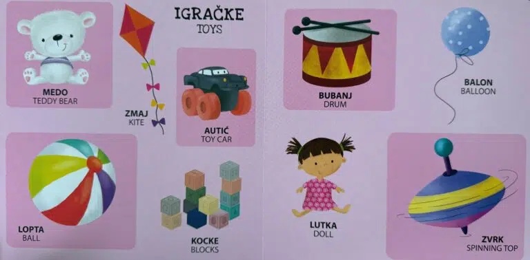 Razne riječi znat ćeš ti i na engleskom govoriti! Ilustrirani hrvatsko-engleski riječnik pomoći će mališanima da nauče sto svakodnevnih riječi, prošire svoje spoznajne mogućnosti i steknu samopouzdanje za daljnje izazove.