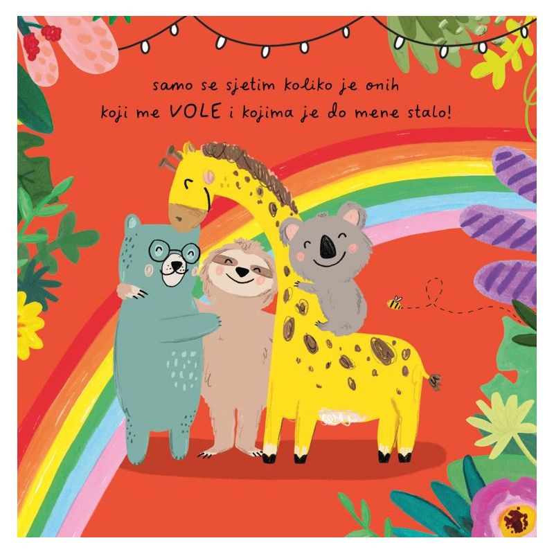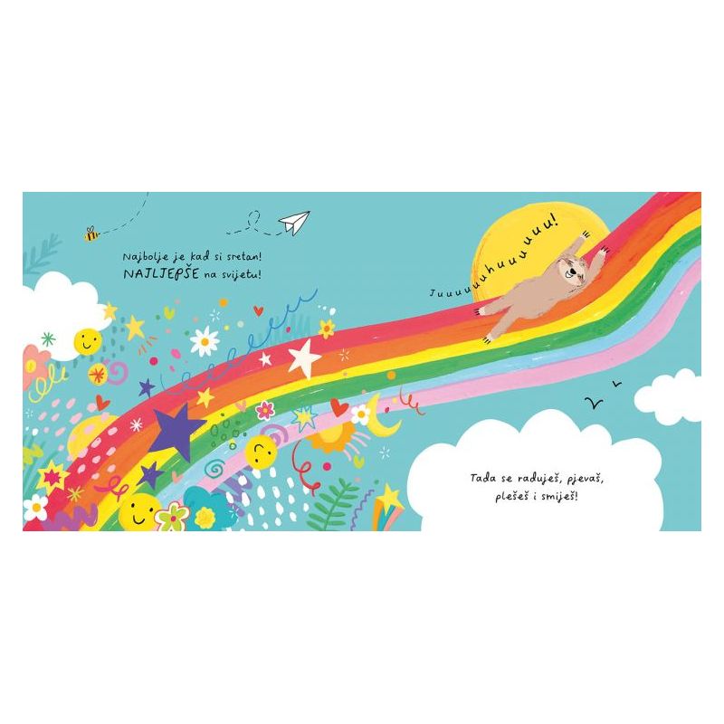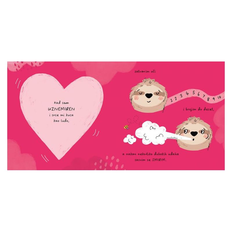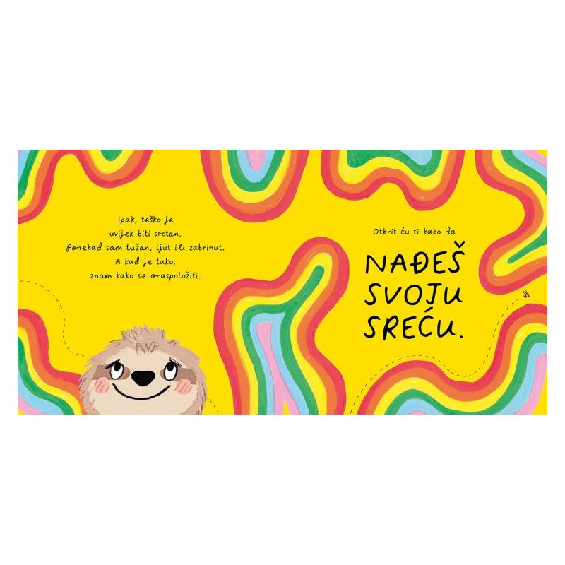 Svi težimo tome da se osjećamo sretno i staloženo, a najviše smo sretni kada u našoj obitelji vlada sklad i sreća, te kada su djeca mirna, zadovoljna sobom i dobro raspoložena. No biti stalno sretan i smiren naprosto je nemoguće. Svakodnevno, u najrazličitijim situacijama, naši mališani proživljavaju cijelu paletu, a katkad i buru emocija. U ovoj slikovnici na jednostavan i vrlo slikovit način, uz pomoć lika ljenivca, autorica objašnjava svaku emociju koja ih zna povremeno snaći i pokazuje im što učiniti da se oraspoložimo, odnosno izađemo iz tog osjećaja sretniji i jači. Slikovnica uči nas, i male i velike, kako se osloniti na samoga sebe – na svoj unutarnji svijet, tako i svoje najbliže – obitelj i ljude koji nas vole. Jednostavne riječi i tople ilustracije ove slikovnice doslovno svakom stranicom potiču roditelja i dijete na dubok razgovor o osjećajima. Svaki roditelj želi znati kako se njegovo dijete osjeća, što se u njemu događa kada je tužno, ljutito, uplašeno, uznemireno, usamljeno i pomoći mu da svaki dan iznova, nađe svoju sreću; da upozna moć vlastite mašte, snagu svog srca i misli, ali i zna da smo tu za njega, da nam se uvijek može obratiti, povjeriti i da je voljeno, zaštićeno i sigurno u našem zagrljaju. Iako je namijenjena prvenstveno djeci mlađe dobi, od 3 do 8 godina, ova je slikovnica blagotvorna za cijelu obitelj.