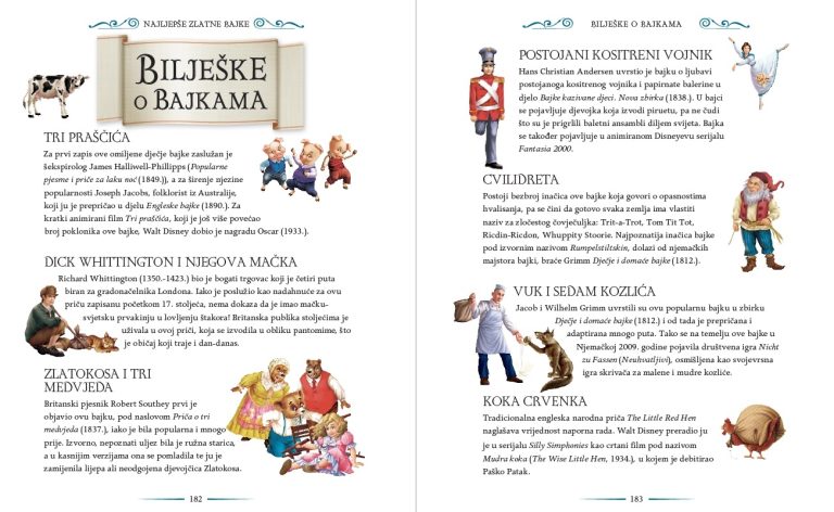 Ova prekrasna zbirka sadrži najdraže dječje bajke najvećih svjetskih bajkopisaca poput braće Grimm, H. C. Andersena i Charlesa Perraulta. Najljepše zlatne bajke zacijelo će postati omiljeno štivo vaše djece.