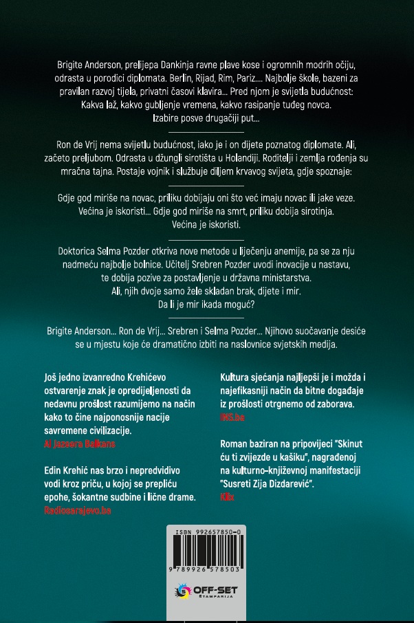 Kao i u prethodnim romanima Čuvaj se i Jednog dana doći ću, oče, Edin Krehić nas brzo i nepredvidivo vodi kroz priču, u kojoj se prepliću epohe, šokantne sudbine i lične drame. U kojoj se sudaraju dobro i zlo, ljubav i mržnja. Šta će pobijediti, otkriće nam zvijezde u Srebrenici…