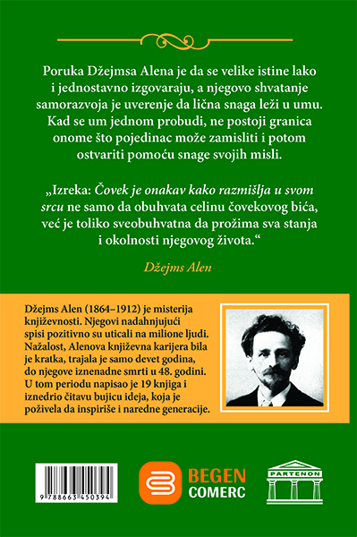 Džejms Alen (1864 – 1912) je misterija književnosti. Njegovi nadahnjujući spisi pozitivno su uticali na milione ljudi. Nažalost, Alenova književna karijera bila je kratka, trajala je samo devet godina,do njegove iznenadne smrti u 48. godini. U tom periodu napiso je 19 knjiga i iznedrio čitavu bujicu ideja, koja je poživela da inspiriše i naredne generacije.