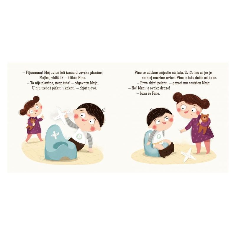 Pino je od bake dobio najljepšu tutu na svijetu – na njoj je naslikan avion! Sad se samo mora sjetiti da sjedne na nju kad osjeti da mora piškiti ili kakati. A to nije uvijek lako, osobito kad se zaboravi u igri!