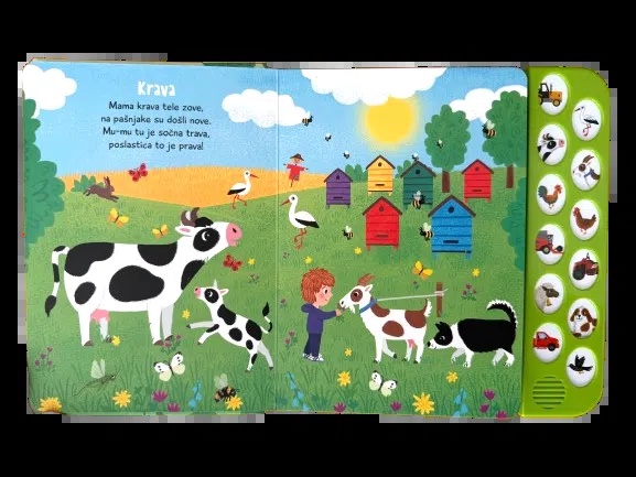 Poslušaj i nauči kako nešto ovdje zvuči! Veseli stihovi i lijepe ilustracije u ovoj slikovnici o zvukovima sa sela oduševit će najmlađe.