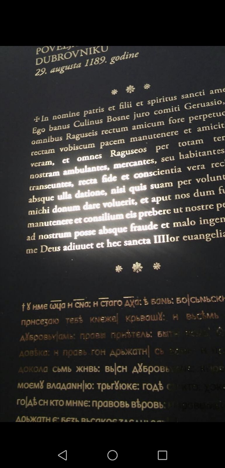 TRILOGIJA O SREDNJOVJEKOVNOJ BOSANSKOJ DRŽAVI +uramljena fotoreprodukcija prvog pisanog spomena bosanskog jezika 1436.