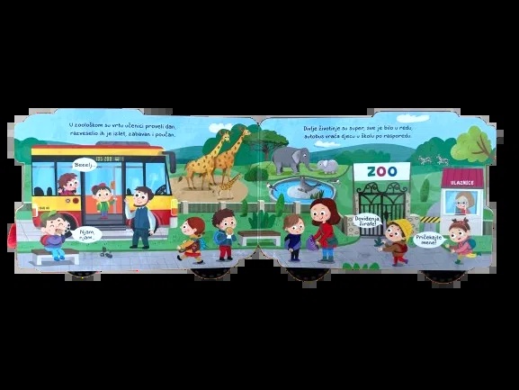 Autobus sad stiže, cijeli će grad obići, svi će putnici na svoje odredište stići. Slikovnica s pomičnim kotačima koja će razveseliti najmlađe! UPOZORENJE: Proizvod sadrži sitne dijelove, preporučuje se korištenje uz nadzor odrasle osobe.