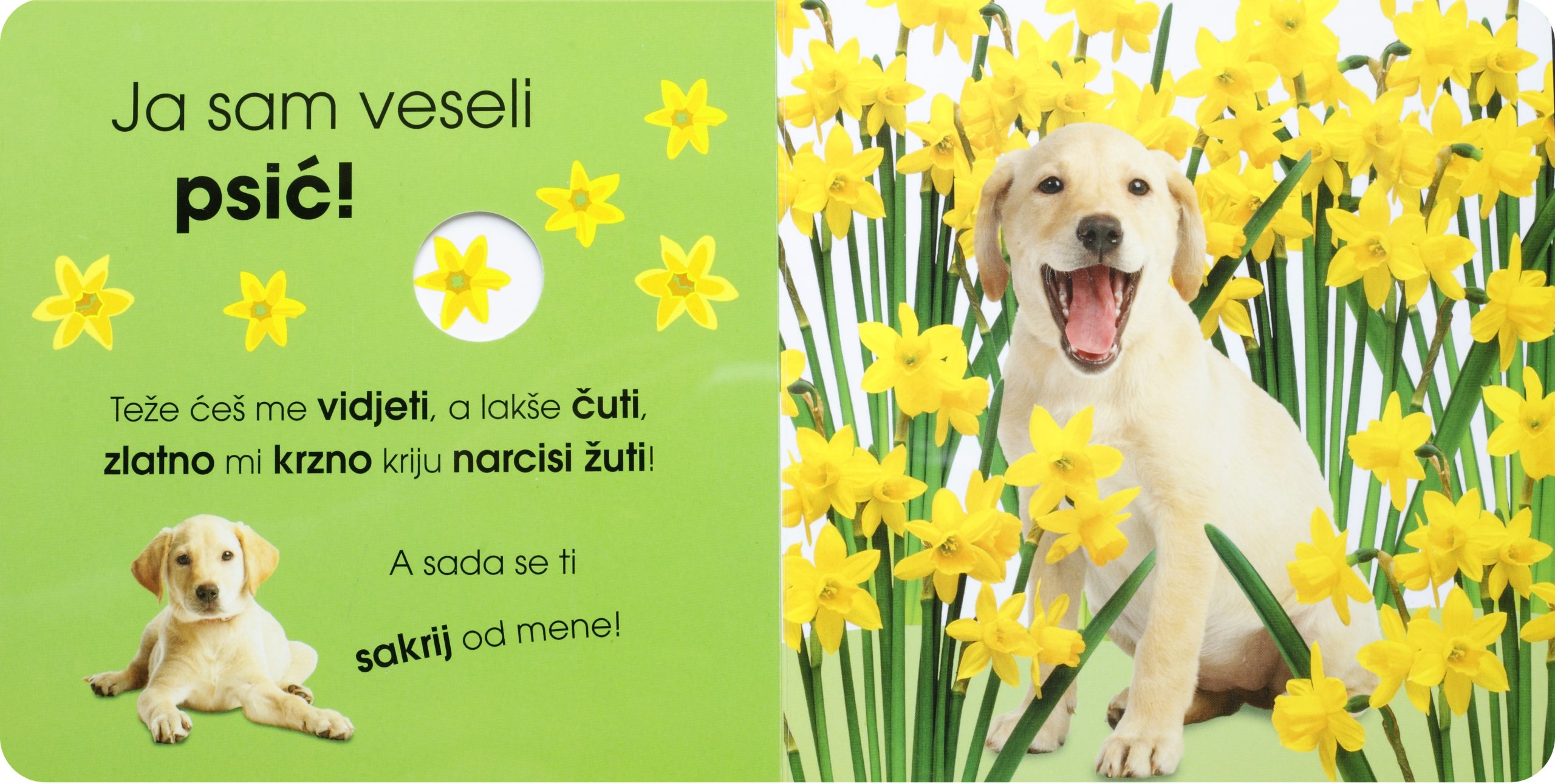 Koji se to simpatični ljubimac krije ispod prozorčića? Psić ili mačić? Je li spreman za igru ili spava? Slikovnica prepuna zabave za najmlađe: otvori za prstiće, razigrani stihovi sa zagonetkom simpatične fotografije malih ljubimaca i novi pojmovi izmamit će osmijeh kod svih.