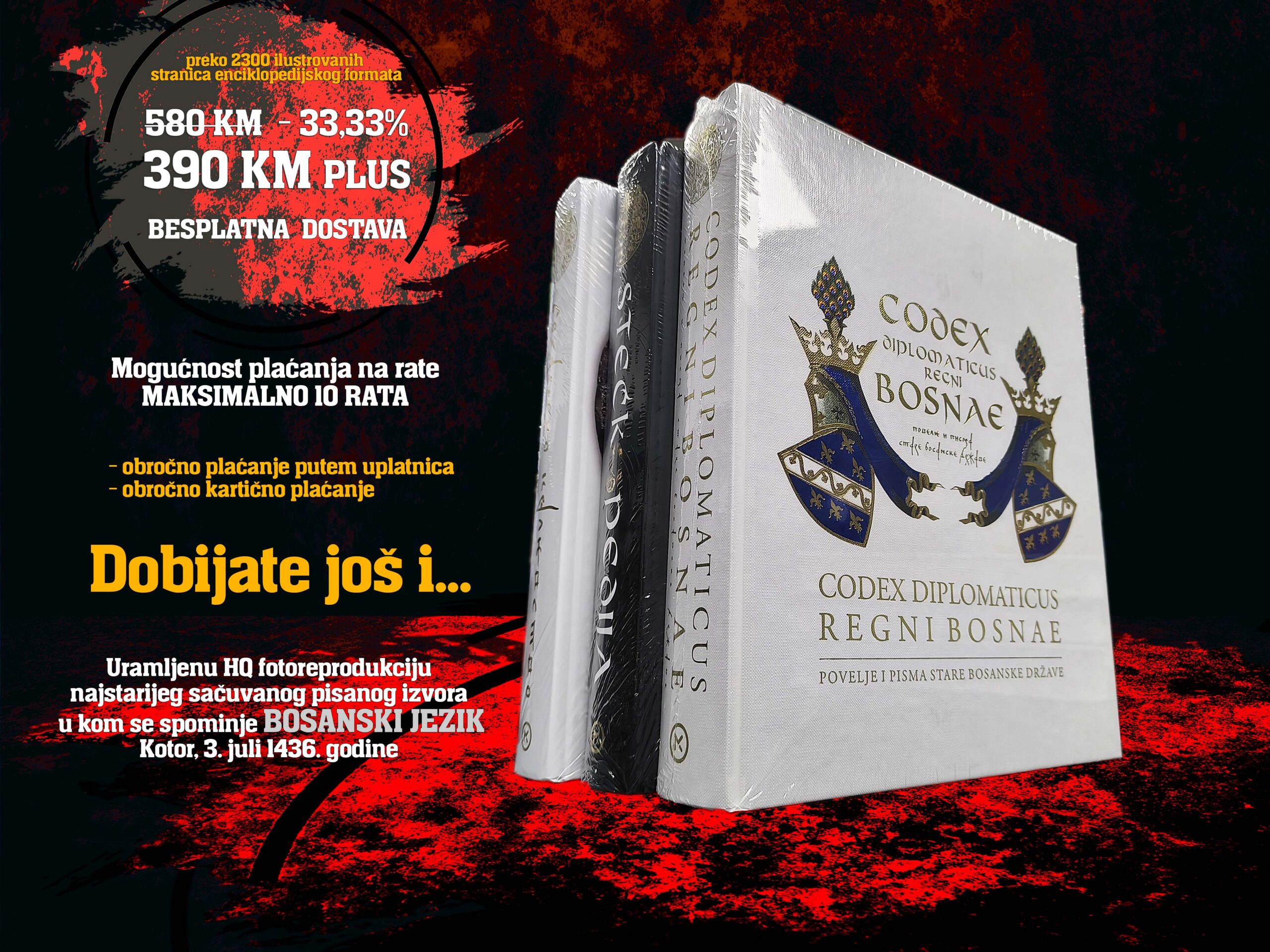 TRILOGIJA O SREDNJOVJEKOVNOJ BOSANSKOJ DRŽAVI +uramljena fotoreprodukcija prvog pisanog spomena bosanskog jezika 1436.