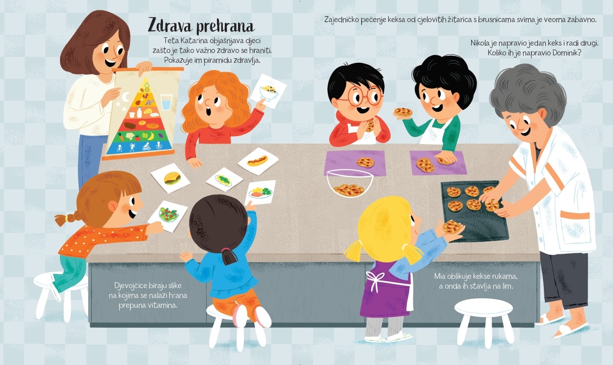 U vrtiću učimo o prirodi i zdravoj hrani! Vrtićka djeca aktivna su u sobi i na otvorenome, promatraju prirodu i uče o njezinim darovima i plodovima. Brinu se o malenim životinjama, uzgajaju biljke, a svaki dan donosi im novu radost te stječu nova znanja i vještine. U ovom zabavnom i poučnom naslovu mališani se upoznaju s prirodom oko sebe – raznim biljkama, cvijećem te voćem i povrćem. Na svakoj su stranici prikazane zanimljive aktivnosti u vrtiću, u koje su uključena djeca, roditelji i odgojiteljice te se na taj način mališane priprema za vrtić i razrednu nastavu.