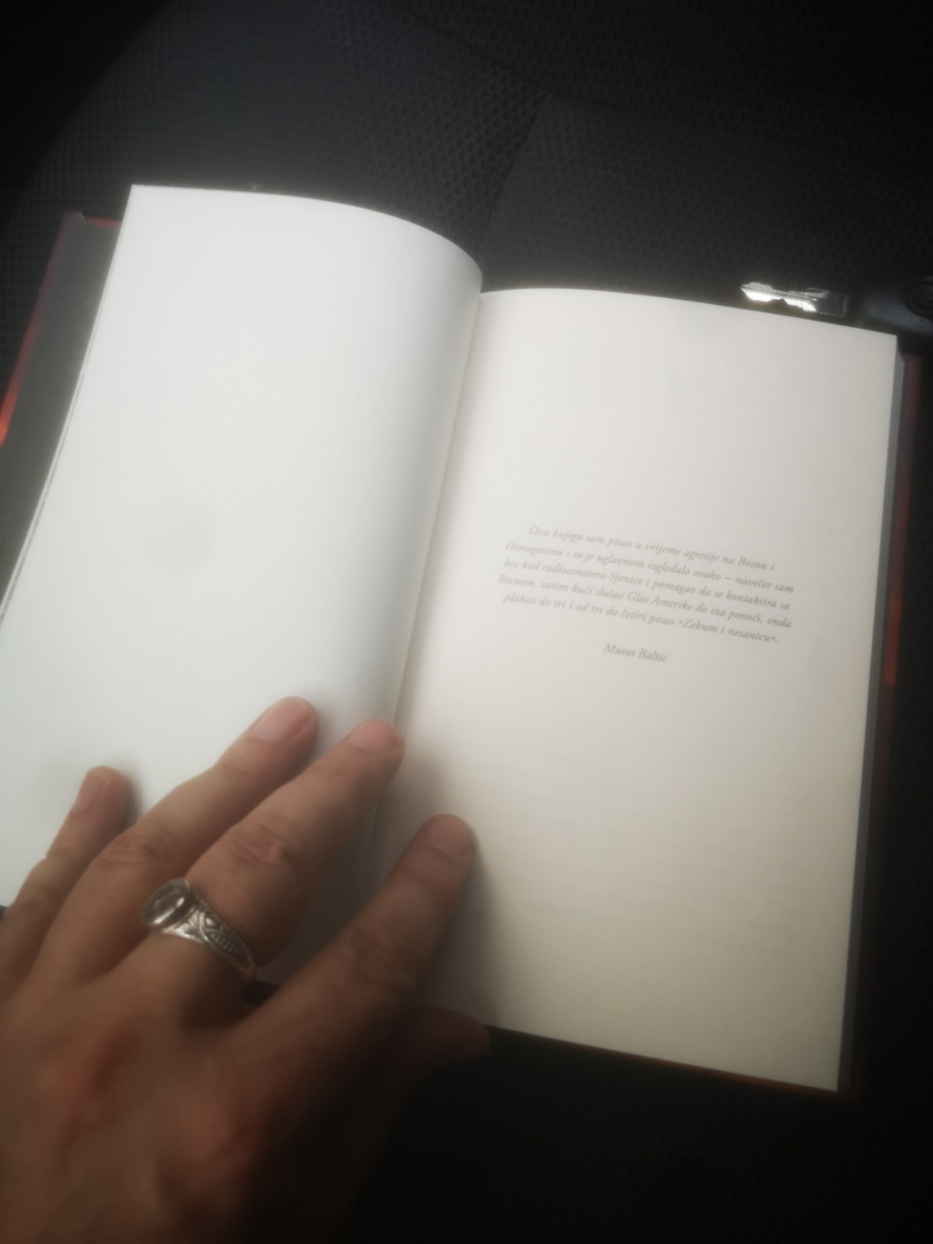 Knjiga “Zekkum i nesanica” od mog dragog kolege Murata Baltića. Rijedak je pisac tako slikovitog govora. Dok slušam audiozapise naših starih iz 1833. pomislim da nam je ta patina i moć da se kaže mnogo u malo riječi svima urođena i da smo je nekako svi temeljito izgubili u državnim školama. Nekim čudom, Murat nije.